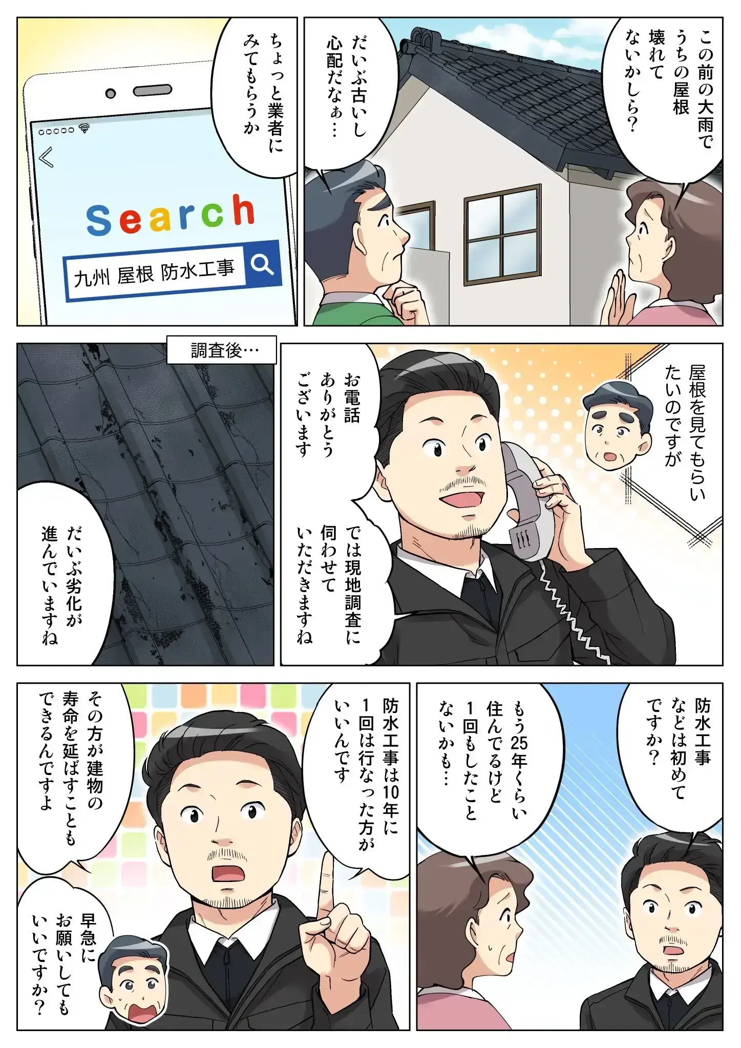 現地調査の結果を基にして、工事内容や日程などの詳細な打ち合わせを行います。不具合が生じている箇所だけを工事するのではなく、建物全体のバランスを考え施工いたします。